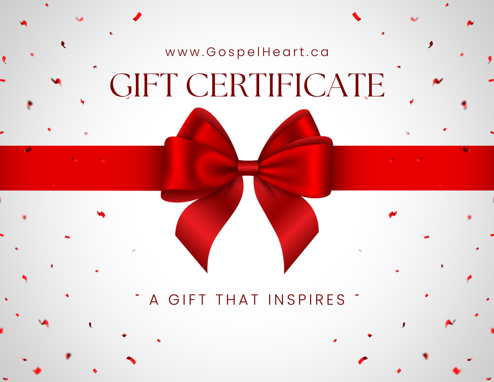 Gift cards are non-refundable and cannot be exchanged for cash (except where required by law). Lost or stolen gift cards cannot be replaced. Gift cards are redeemable only at www.GospelHeart.ca or by calling 647-886-2882 and cannot be used to purchase other gift cards. No service fees or expiration dates apply. Use of this card constitutes acceptance of these terms.